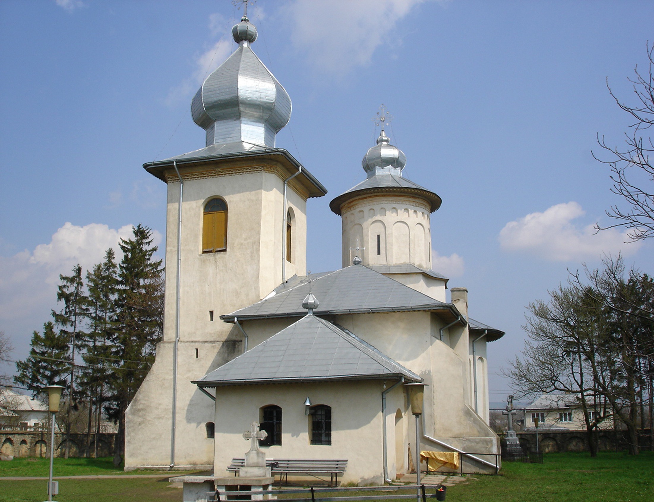 „Biserica veche a satului, precum şi satul a fost peste Siret la locul numit „temelie” unde până acum câţiva ani s-a găsit o piatră, care se zice a fi fost pristolul bisericii. De la alungarea saşilor, care se zice ar fi fost alungaţi de Voievodul Ştefan cel Mare, locuitorii, din cauza vărsăturii Siretului s-au strămutat cu totul pe locul unde se găseşte astăzi satul, ocupând şi biserica ce a rămas de la saşi şi care se găseşte şi astăzi. La ce an şi de cine e zidită această biserică nu se ştie. Bătrânii povestesc că şi lor li s-a spus de alţii, că această biserică, înainte de a fi românească, a fost a saşilor şi, deci, e făcută de ei. Cum a devenit ortodoxă, unde s-au dus saşii ce locuiau pe aici şi din ce pricină, nimeni nu ne poate spune nimic.